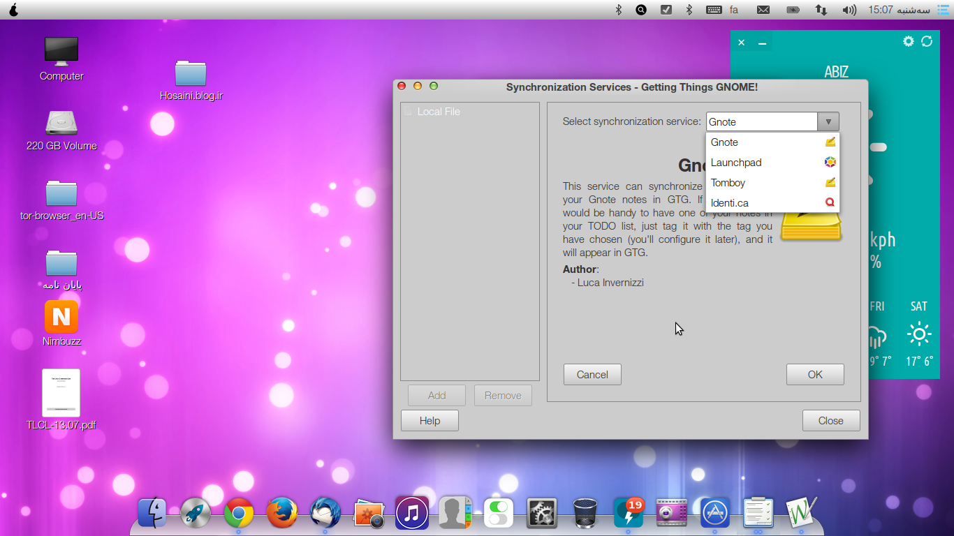 حالا روی Add کلیک کنید و از Check Box یکی از سرویسهای Gnote , launchpad, Tomboy ,ldenti.ca یکی رو برای همگام سازی انتخاب کنید.